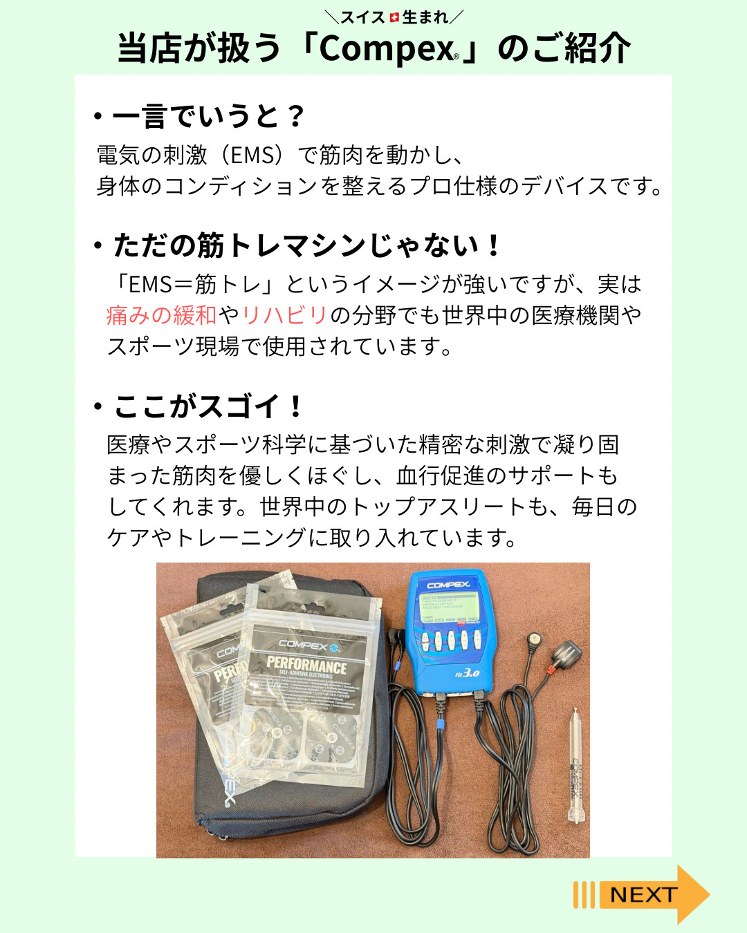 compex(コンペックス)の電気刺激デバイスを使って、